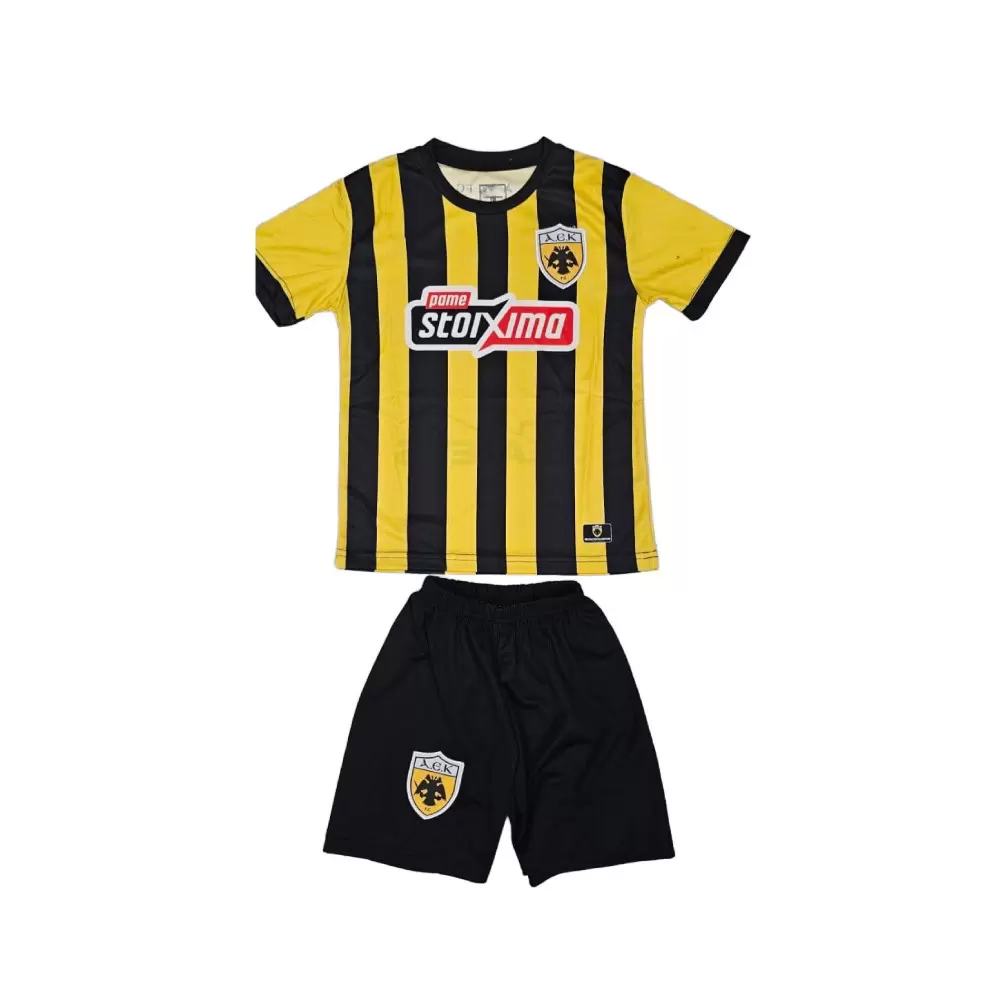 AEK PINEDAΠαιδικό Ποδοσφαιρικό Σετ ΑΕΚ 2025-2026 Εντός Έδρας – Άνεση & Στυλ στο Γήπεδο!Ανακαλύψτε το απόλυτο ποδοσφαιρικό σετ ΑΕΚ 2025-2026, σε κίτρινο και μαύρο ριγέ σχέδιο. Το σετ περιλαμβάνει κοντομάνικη φανέλα με τεχνολογία Dri-Fit για δροσερή και στεγνή αίσθηση, καθώς και άνετο σορτς με ελαστική μέση για τέλεια εφαρμογή. Ιδανικό για παιχνίδι, προπόνηση & καθημερινές εμφανίσεις! Το σετ ποδοσφαίρου για παιδιά είναι ιδανικό για προπόνηση, παιχνίδι στο γήπεδο αλλά και καθημερινές εμφανίσεις, προσφέροντας ελευθερία κινήσεων και άνεση καθ’ όλη τη διάρκεια της χρήσης.